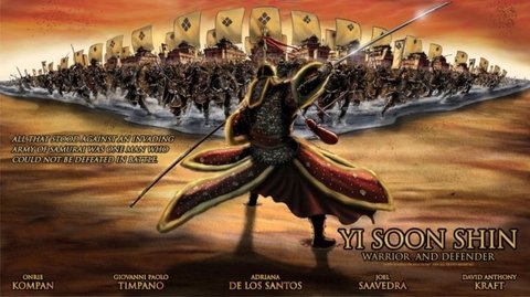 뜻: 석자 되는 칼로 하늘에 맹세하니 산과 물이 떨고, 한번 휘둘러 쓸어버리니 피가 강산을 물들인다