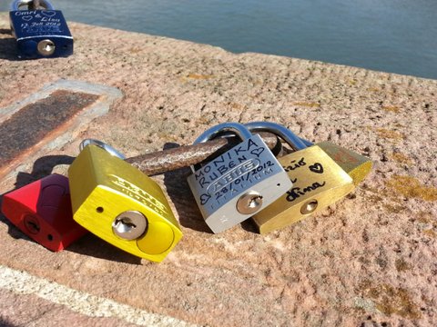 자, 이제 나는 철학자의 길을 걷기로 함. 사진으로 보니까 엄청 좋아보였던 걸로 기억함. 그 철학자의 길을 가기 위해 다리를 건너야하는데, 전세계 어딜 가든 이놈의 자물쇠는 다 달려있음.