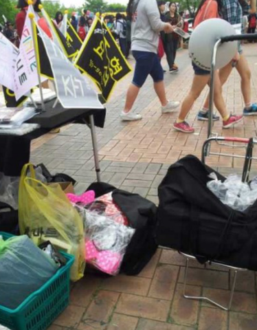 멤버들도 기분이 안좋아보였어요. 사방에 도용된 응원도구가 퍼져있는데