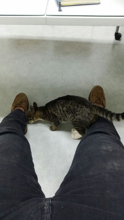 (애교가 너무 많아서 길냥이인지 잘 모르겠습니다. 복도 돌아다니면서 찍은 동영상도 있는데 걷는대로 쫑쫑쫑 따라오고 멈추면 다리사이에서 애교를 부리는 것이 사람을 잘 따르는 것 같아요. 저에겐 좋은 추억이지만 혹시 누군가에게 안타까운 사연이 아니길 바랍니다. 이 길냥이의 정보를 아시는 분은 댓글달아주세요. 위치는 수원 경기대입니다.)