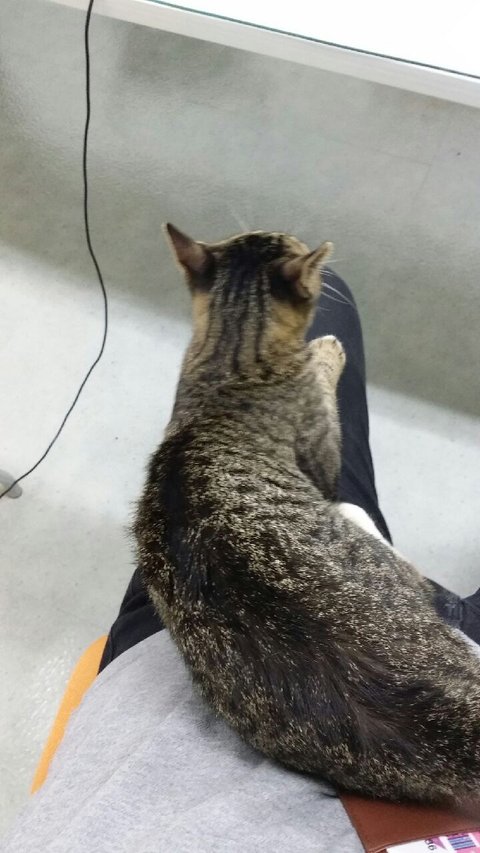 더 재우고 싶었지만 이놈 발톱이 내 옷을 파고들어 섬유를 찢어놓음은 물론 옷 안으로 바늘이 들어오는 기분을 더 참을 수 없어서 깨움..