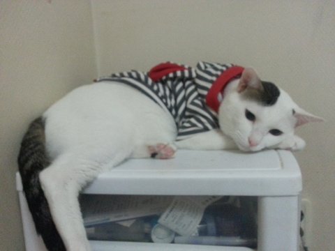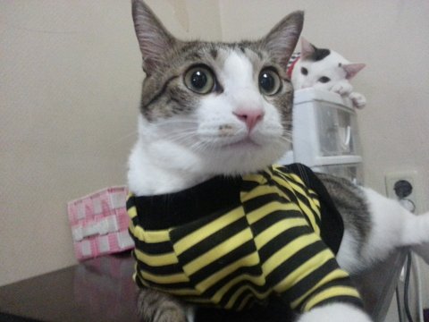 오늘 같이사는 친구가 고양이 새옷을 사왔기에