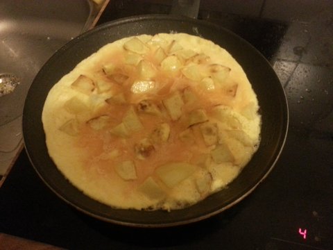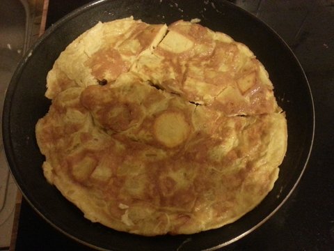 또르띠아 라는 건데, 감자와 계란 넣으면 후딱 만드는 음식임. 감자 세네개, 계란 7개 정도로 만듦.