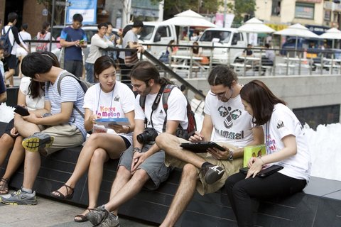 외국인들에게 친절하게 설명하는 모습이 보기 좋아서 한 컷!
