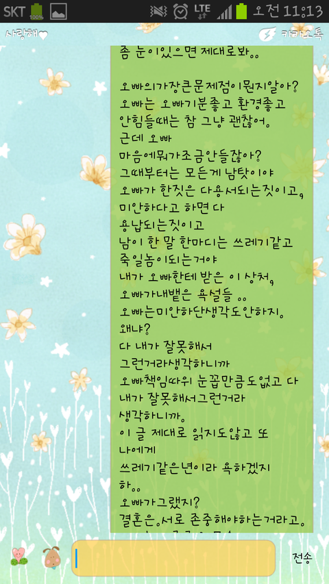 그래도.. 그때마다 미안하다고 울면서 이야기하는 이새끼를 받아줬으면 안됐어요..하아..