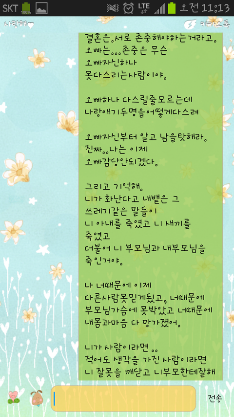 절 놓치기 싫어서 그랬대요. 완벽한 지여자로 만들고싶었대요. 거지같은새끼..