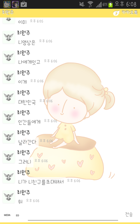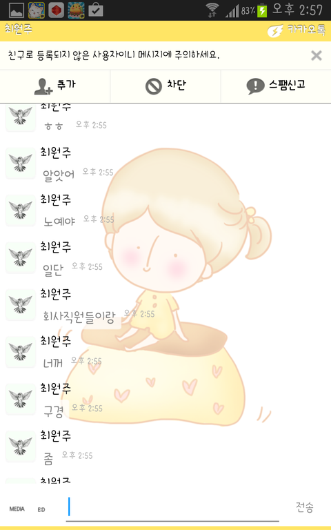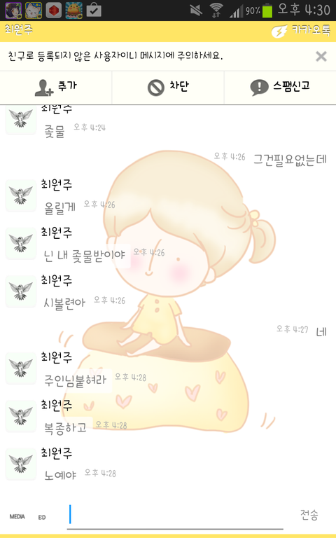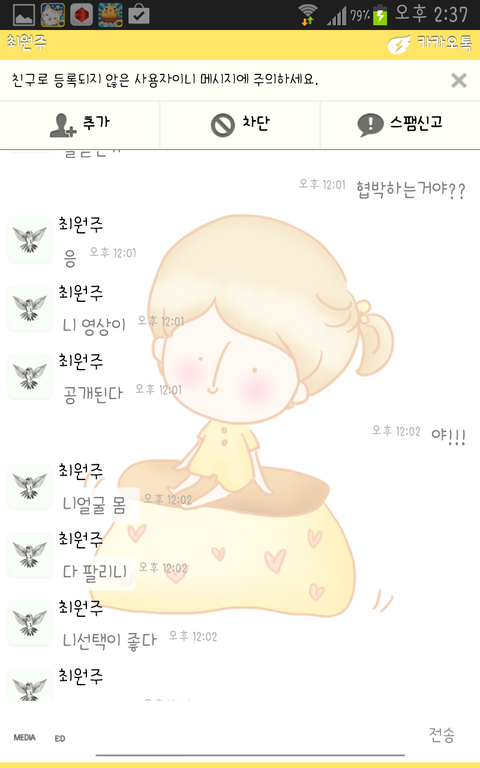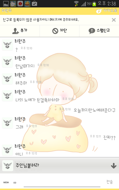 카톡이날라와서뭔가하구봤는데친구하자는거였습니다