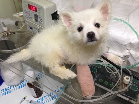 사진은 링거 바늘을 4 다리 다 돌고 다시 앞다리로 왔을 때의 사진입니다.