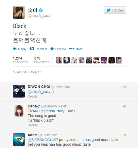 수지가 먼저 지드래곤 블랙 좋다고 홍보?겸 그냥 팬심으로 트위터에 올리고