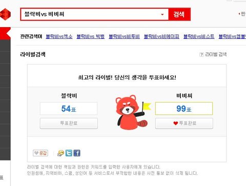 블락비 검색하려다가 밑에 블락비vs비비씨 뜨길래 눌러봤는데ㅋㅋㅋㅋㅋㅋㅋㅋ 비비씨가 이기고있음ㅋㅋㅋㅋㅋㅋㅋㅋㅋㅋㅋㅋㅋㅋㅋㅋㅋㅋㅋㅋㅋㅋㅋㅋㅋ