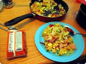 - 계란 1개는 밥이랑 섞고, 하나는 스크램블 해서 섞어 줍니다.