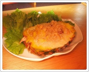 - 속을 파낸 파인애플 통에 볶음밥을 넣고, 연유를 위에 뿌리면 끝!!