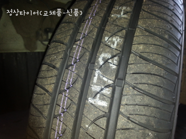 혹시 몰라 비교용으로 정상타이어 사진을 올림.