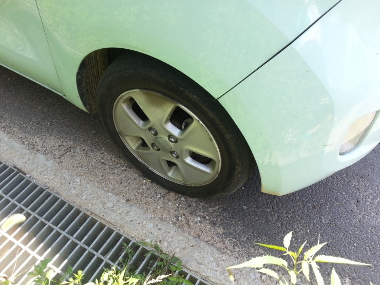 2일째 13시경 주차장에 있던차를 빼서 이동하려고 하자 타이어에이상이 있어 확인해보니 운전석 앞타이어가 펑크나있음