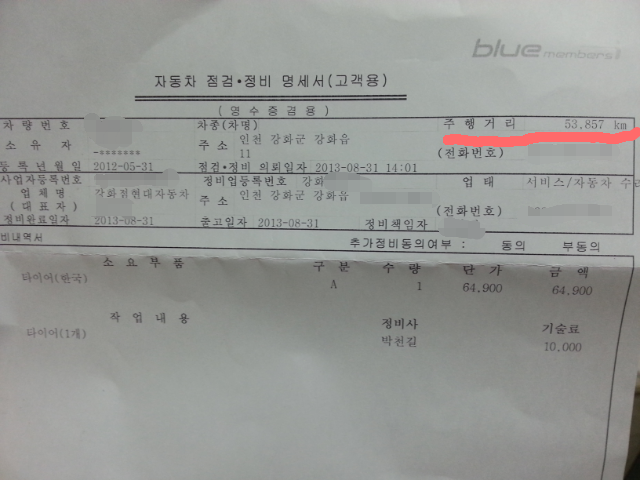 3. 공업사에서 타이어교체함.