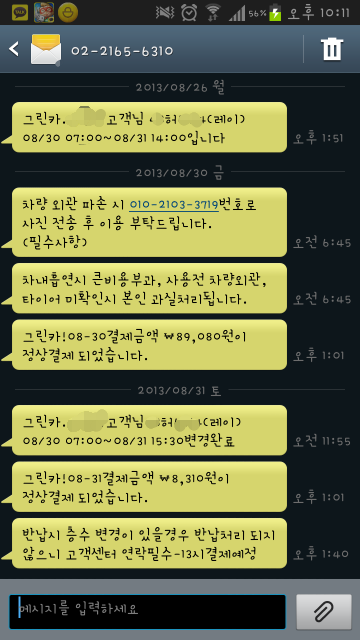 4. 이내용을 그린카에 전달(공업사사장님까지 통화)하였으나 우선 운전자가 차량수리비용 결제하고 차량도 반납장소로 갖다놓으라고함.