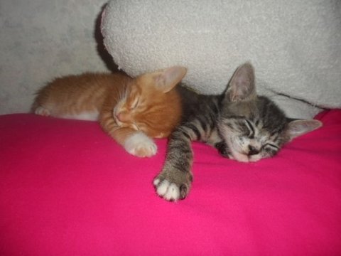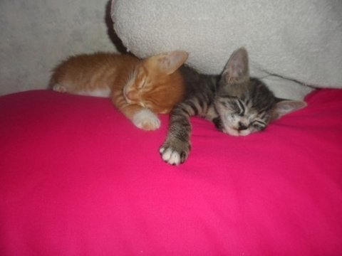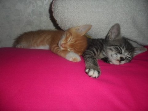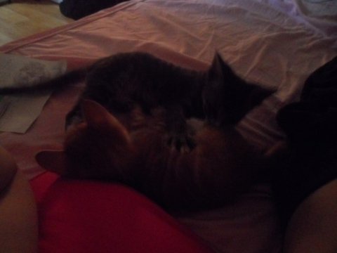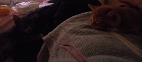 이렇게 어색하고 어색하던 2개월 된 하모와 1개월냥 아모는