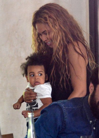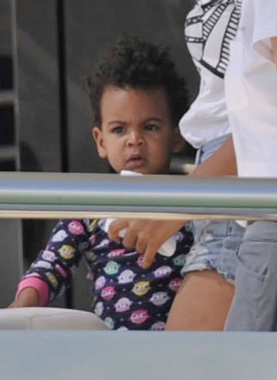 딸램 안고 요트에 오르고 있는 팝디바 비욘세