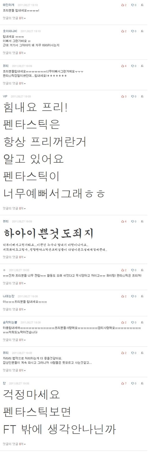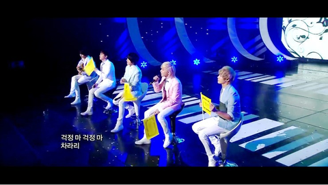 음악방송에서 펜타스틱들고 팬송부르는 오빠들이예요