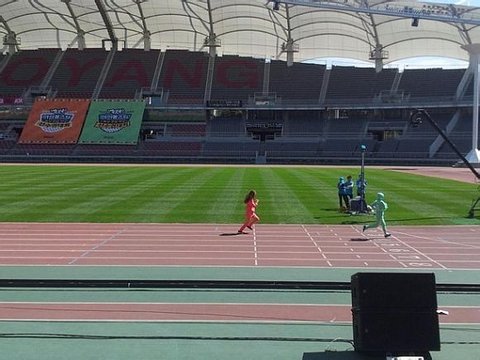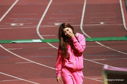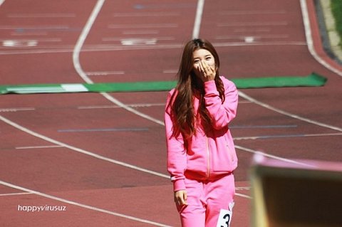 달리기 꼴지가 그리 무슨 흉이라구ㅋㅋㅋ 팬들 플래시 세례에 넘 부끄러워하는 수지ㅋㅋㅋ