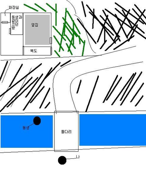순간 너무 무섭고 놀래서 동생에게 빨리 위로 올라오라고 소리를 지름