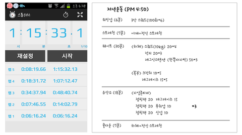 운동 참고 사진 -실제 운동하고 기록한 내용이에요!