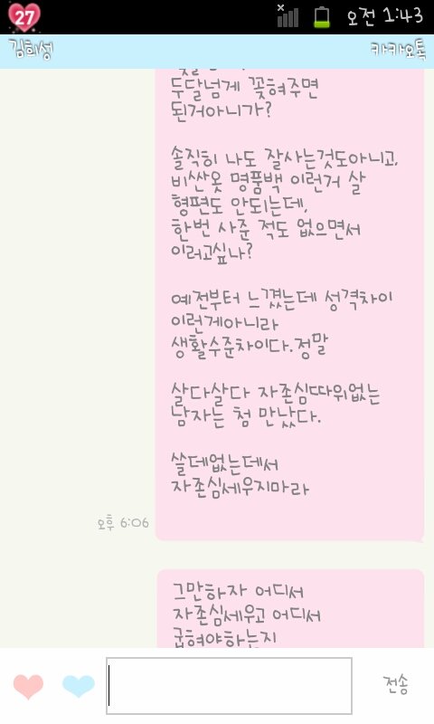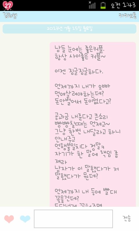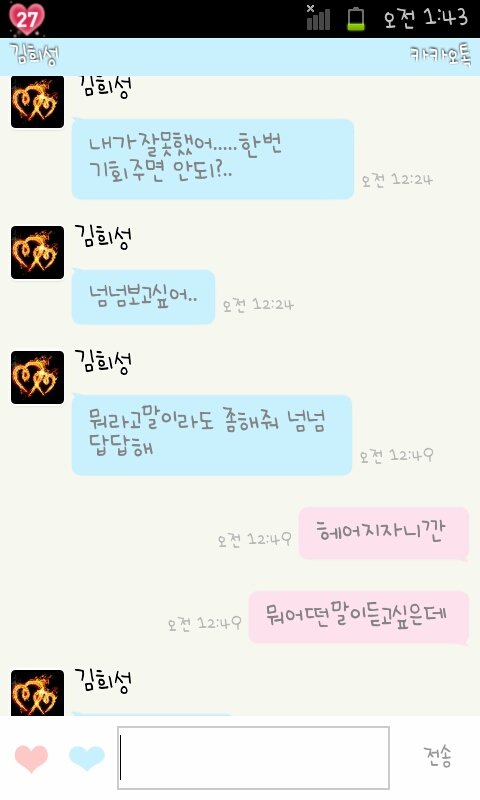 저도 정내미다떨어져서ㅡ헤어지자고 톡을 길게썻어요
