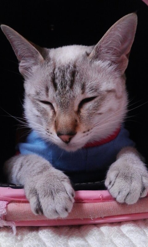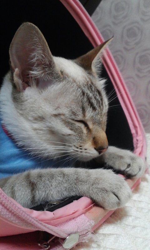 이동가방을 비스듬하니 앞발로 쥐고 잠 ㅋㅋㅋㅋㅋㅋㅋㅋ