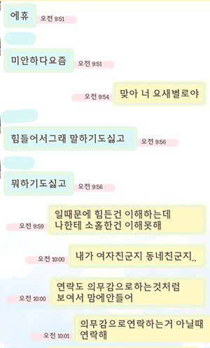 의무적으로 연락하는것같은 느낌들어서 너무 싫다