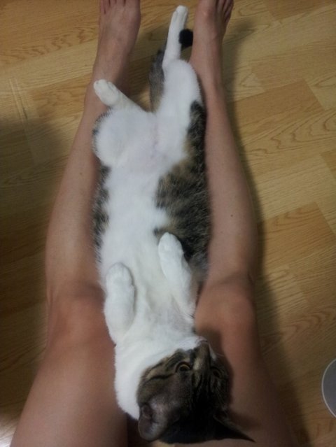 특별히 괴롭힌건 아님.ㅋㅋㅋㅋ 그냥 뒤집길래 다리 사이에 끼워 보았을 뿐.ㅋㅋ