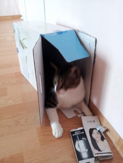 지보다 작은 상자에…상반신은 안들어가고.ㅋㅋ 그래도 좋다고.ㅋㅋ