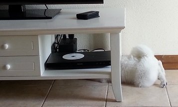얼마후, 털이 조금 자라고, 다시 활달해져서 텔레비전 아래를 누비고 다니는 설이..