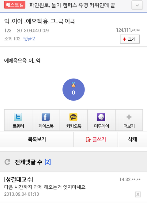 부실대 선정되고 단체멘붕한 성결대갤러리