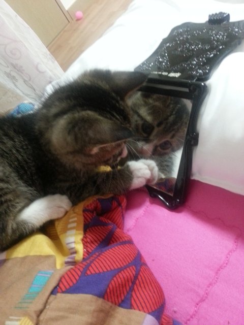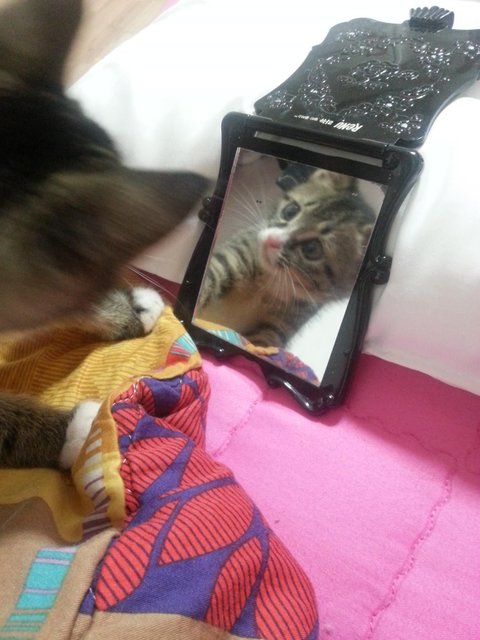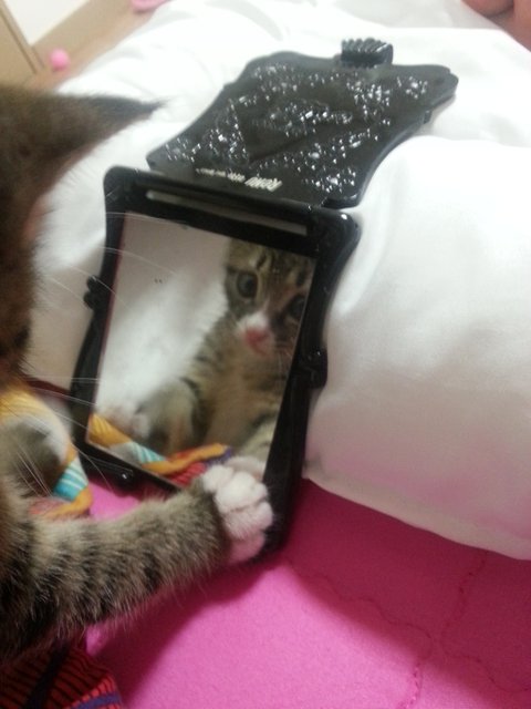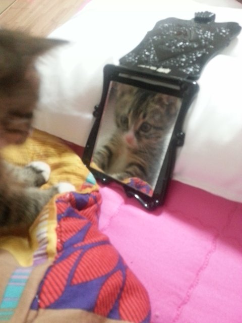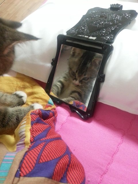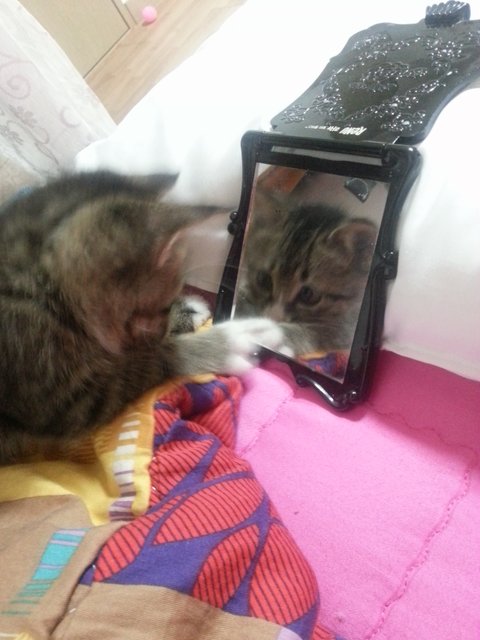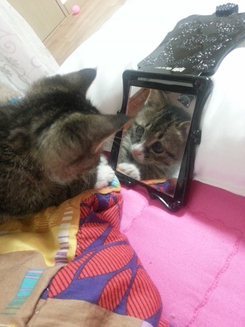 거울안에 친구가 있는줄 아나봄 ㅋㅋ
