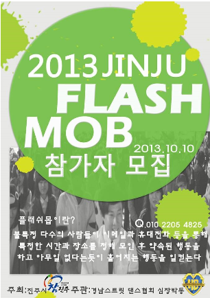 2013 진주 FLASH MOB VOL.2 !!!!! 뜨거운 열정으로 가득한 여러분들의 많은 관심 바랍니다^^ FLASH MOB vol.2 참가신청을 위한 링크입니다 ^^