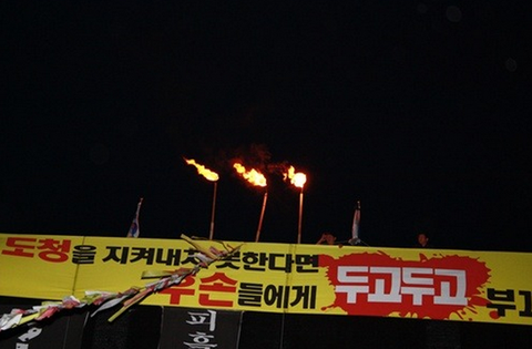 [ 경악 ] 피 묻은 플랜카드의 증오, 폭력 조장하는 광주 축제