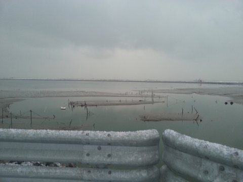 물고기 양식을 할것 같은 도로 바로 옆에 있는 바다 였음