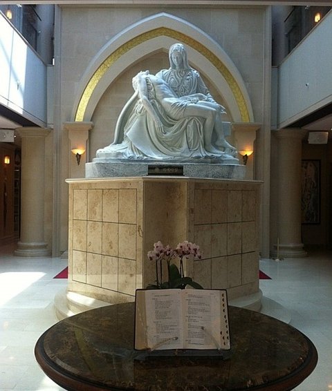 어머니가 잠들어 계신 추모관 본관 입구를 들어서면 가장 먼저 조문객을 맞이하는 미켈란젤로의 작품 '피에타' 모작 조각상....