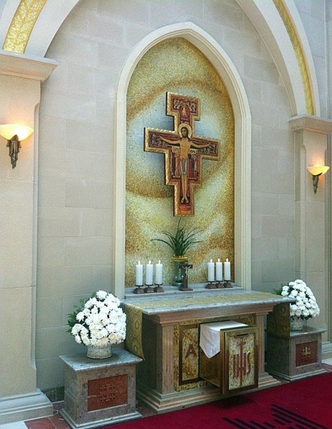 '피에타'조각상 뒤에는 이렇게 간단한 미사나 기도를 들리수 있는 제대가 마련되어 있고....