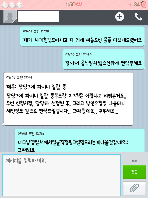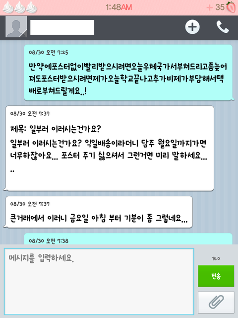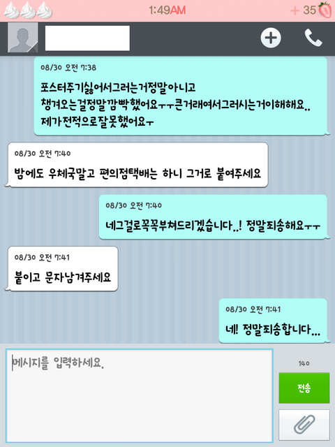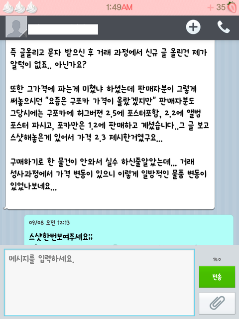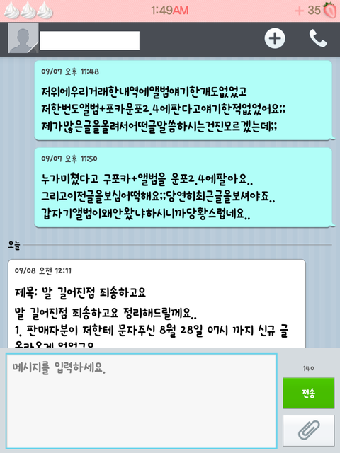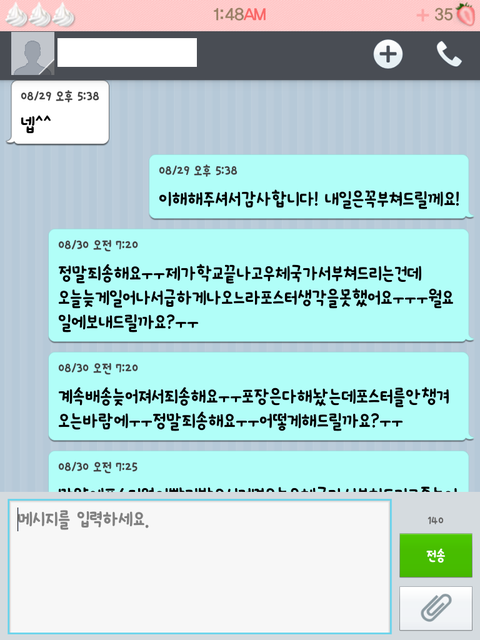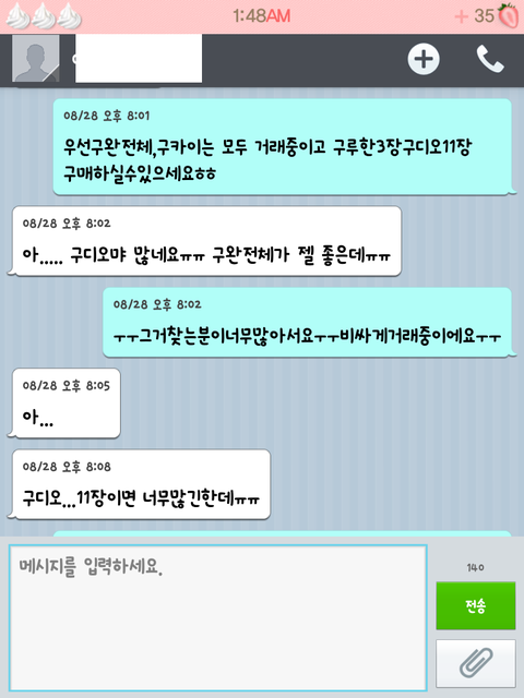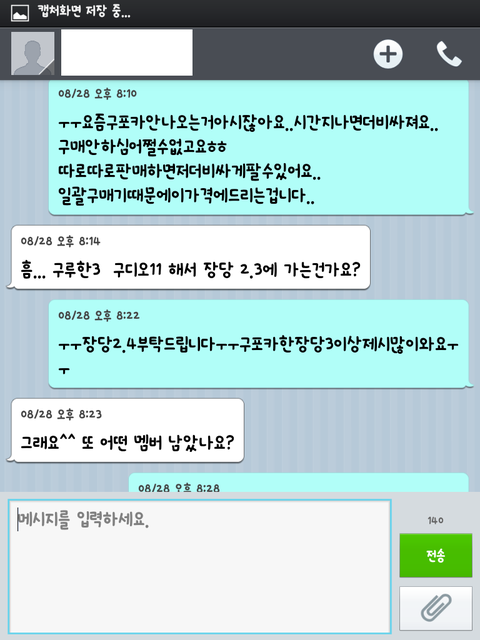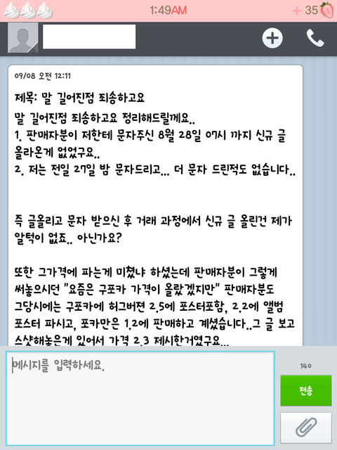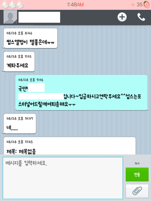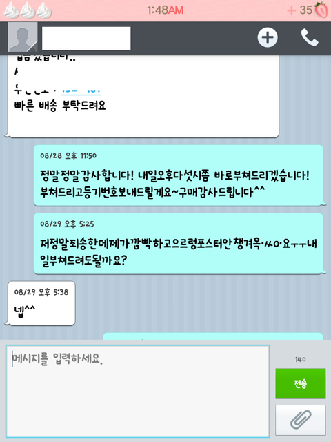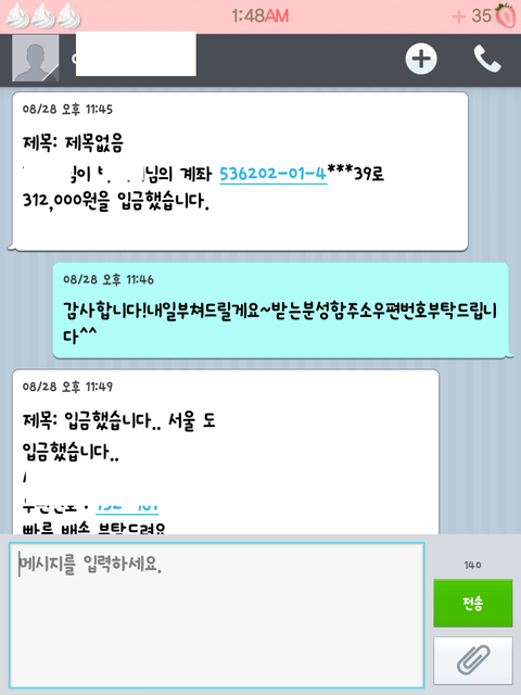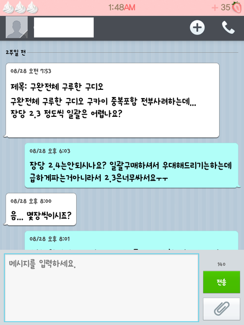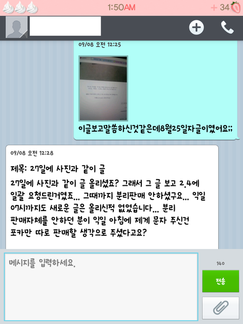 2주일전에 8월 28일에 내가 쓴 글 보고 구매한다고 문자가 왔고
