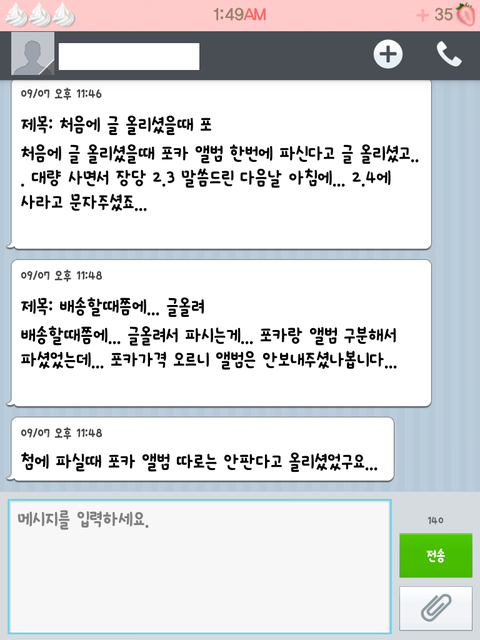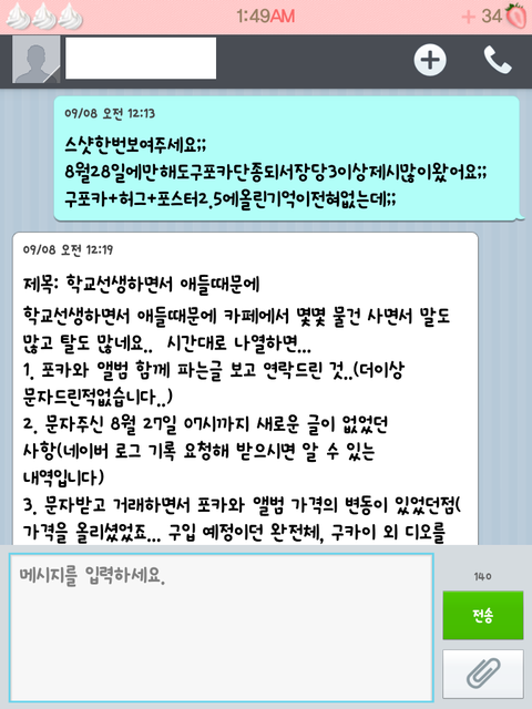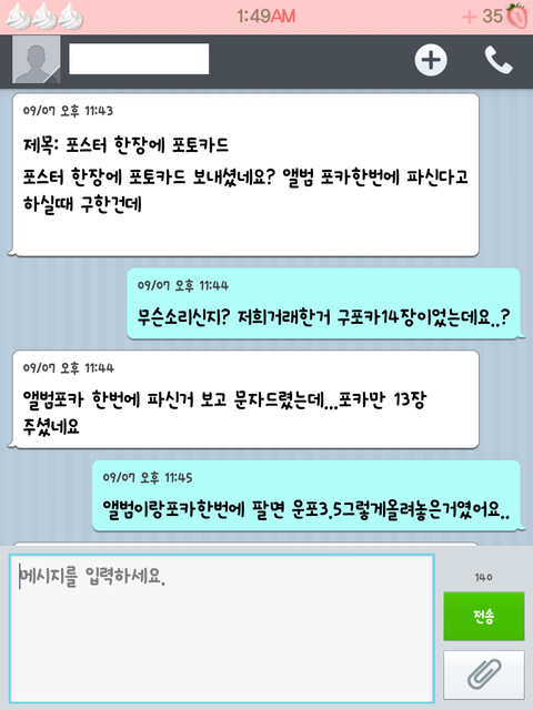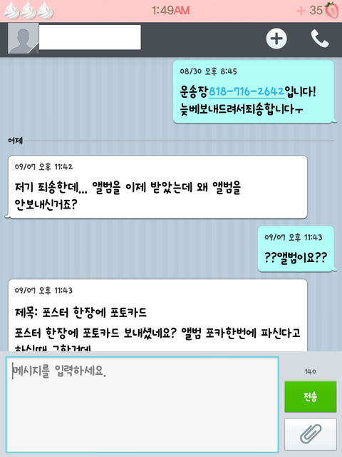 근데 문자내역 보면 앨범 얘기는 아예없어 다 포토카드 얘기만 있어
