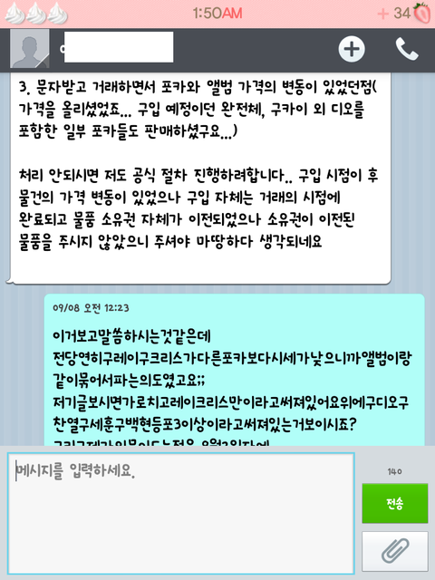 그래서 포토카드만 거래한거니까 당연히 안가신다고 했어
