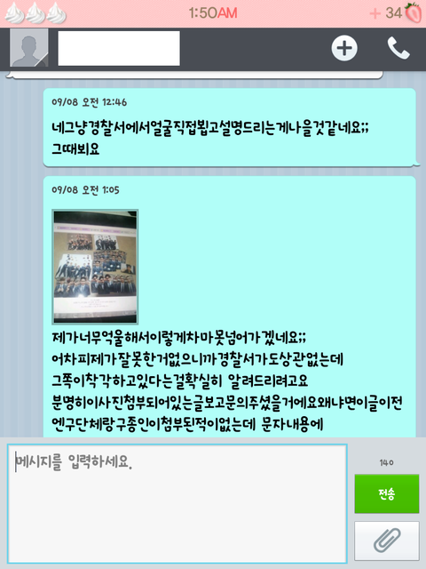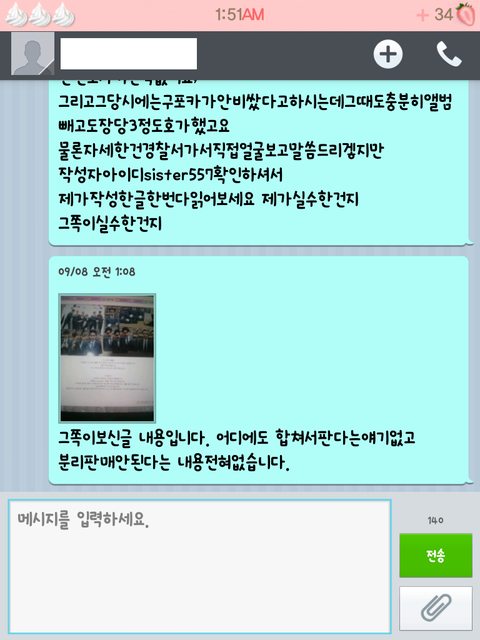 근데 방금 문자로 왜 앨범은 안보내줫냐고하더라?
