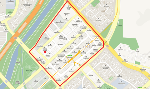 그리고 빨간선으로 그려놓은 것이 사람들이 제일 많이 모이는 번화가 입니다.