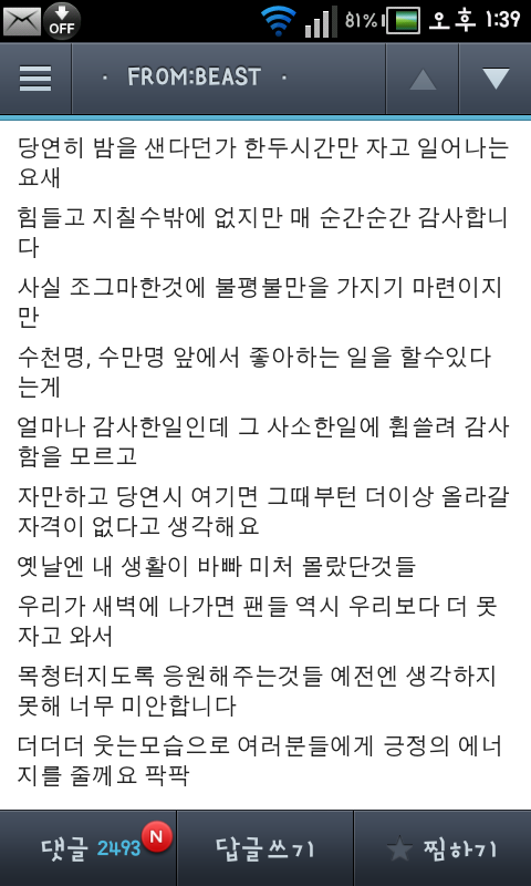 비스트선행진짜한두개가아니죠ㅠㅠ..윤두준가마부터 기모노착용거절등이렇게이쁘고 착한짓만 하는 비스트라 탈덕못하겠네요 할마음도없지만....비스트는스스로자기이미지를만들고그에 따라 뷰티들도노력많이하는것같네요 우리모두힘내서 가수와팬모두 개념만들수있게합시다..오늘런닝맨 열림음악회둘다너무기대되네요