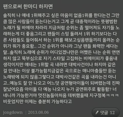 그냥 가수 믿고 그자리에서 같은 마음으로 응원해주는게 팬이 할일이 아닌가 싶다