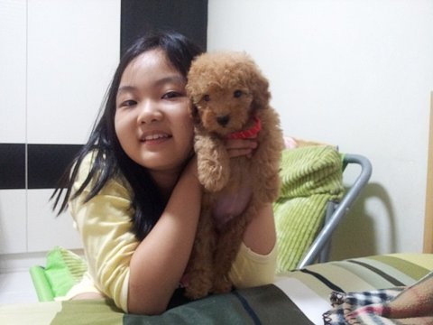 이때 이미 다른 토이푸들보다 머리하나는 더 컸었어요.