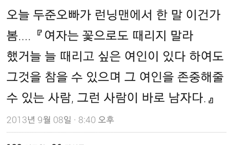그때 두준오빠가 발끈하시면서 여자는 꽃으로도 때리면 안되는거라고 했어요!