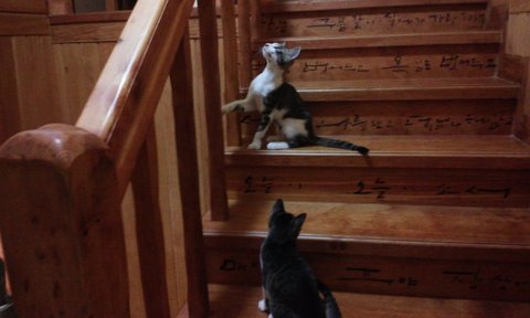 그러면 이녀석들이 계단에서 놀다가 굴러서 벽에 박음...처음에 밤에 도둑인지 알고 놀람 ㅋㅋㅋ