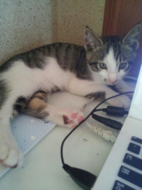 컴퓨터 하고 있는데 올라와서 방해를...(깨알같은 메이플... 제가 좀 즐겨해요)